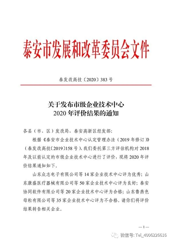 2020年12月17日,泰安市发展和改革委员会公布了2020年度泰安市企业技术中心认定评审结果的通知,浙江增洲重工科技有限公司荣列其中,被认定为市级企业技术中心,评审结果为良好。