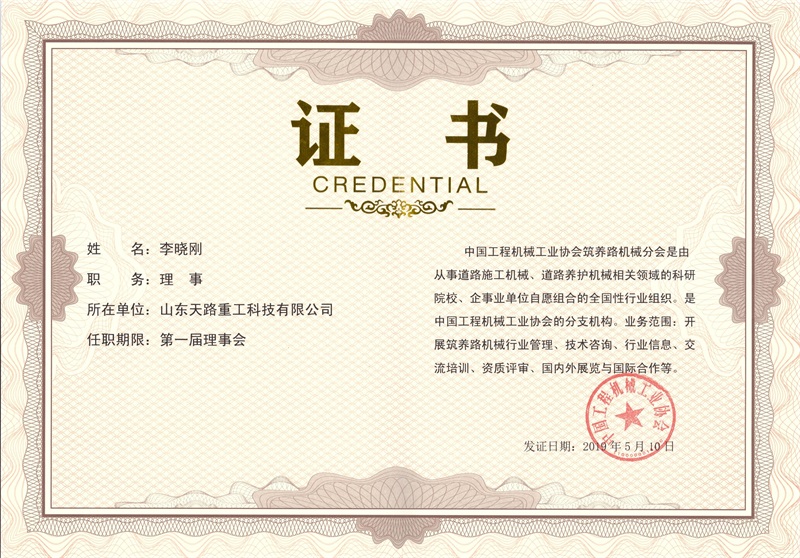 中国工程机械工业协会聘请证书